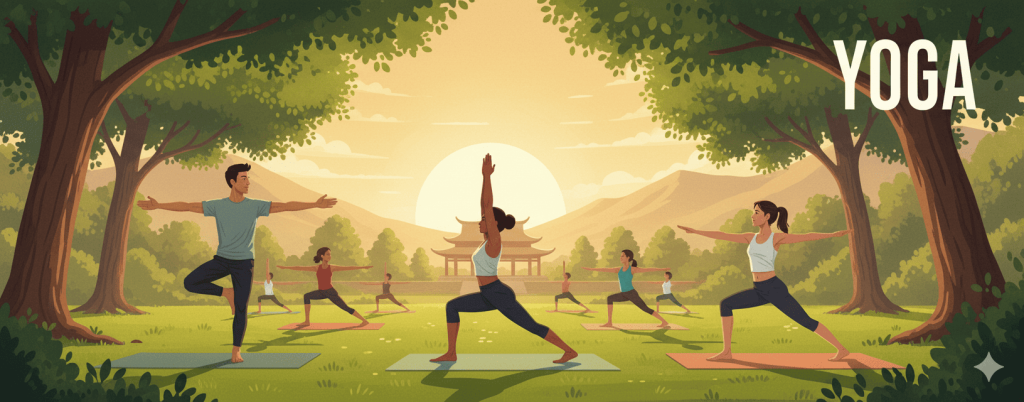 A mindтАУbody discipline that combines physical postures, breathing, and focus to enhance strength, flexibility, and balance.